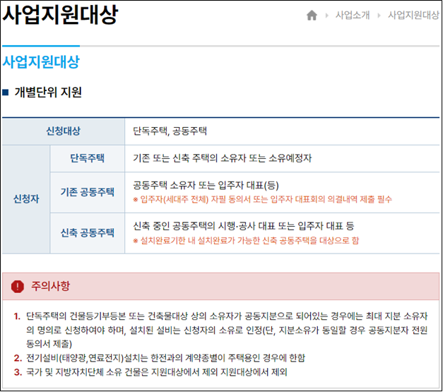 ① 단독주택 태양광 발전기 정부 보조금 지원 사업은, 에너지관리공단에서 매년 4월~5월경에 시행 (신청 접수)