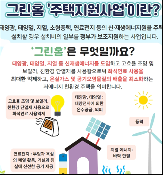 - 그 이유는, 올해부터 태양광 설치 주택 지원 사업 신청은, 신청자가 직접 에너지공단 전산 그린홈 홈페이지에 들어가서 진행 [그린홈 https://nr.energy.or.kr/A0/GN_00/GN_00_00_010.do]