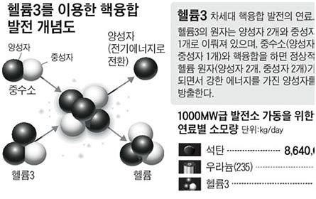 - 헬륨-3 1g은 석탄 40톤(t)과 비슷한 에너지를 효율을 도출해 냄