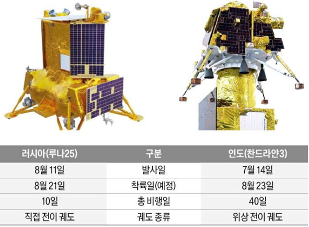 ② 루나 25호는 달 남극 북쪽에 착륙해, 1년간 달 내부 구조와 자원 탐사 임무를 수행할 계획, 예정일을 앞두고 착륙에 실패(1976년 이후 47년 만에 실패로 막을 내림)