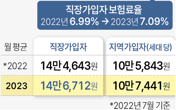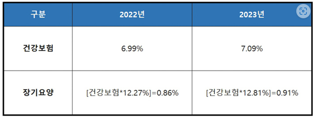 - 직장가입자 : 6.99%(2022년) → 7.09%(2023년)