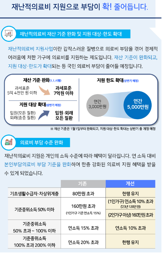 - 갑작스러운 질병으로 의료비 부담을 겪어, 경제적 어려움에 처한 가구에 의료비를 지원하는 제도