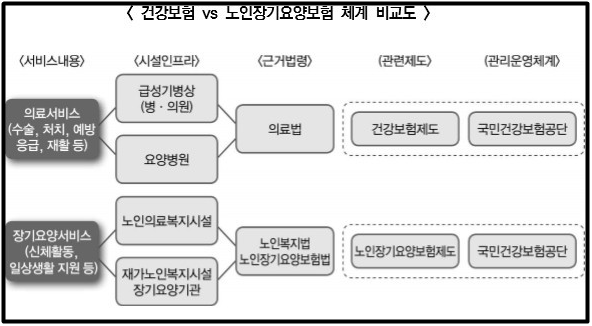 ▲ 건강보험 대비 노인장기요양보험 체계 비교
