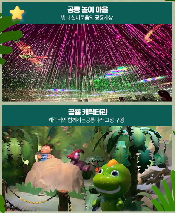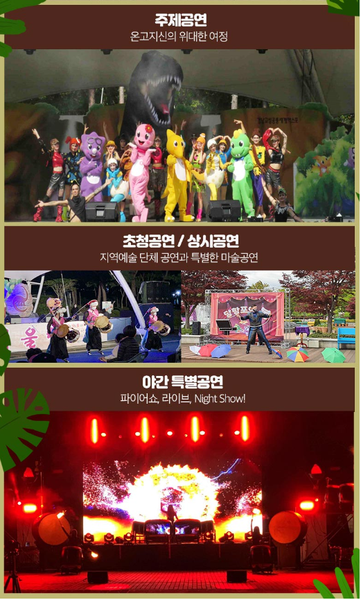 - 상설무대(공연, 마술 등) 상시 운영, 공룡 테마 체험 프로그램 등