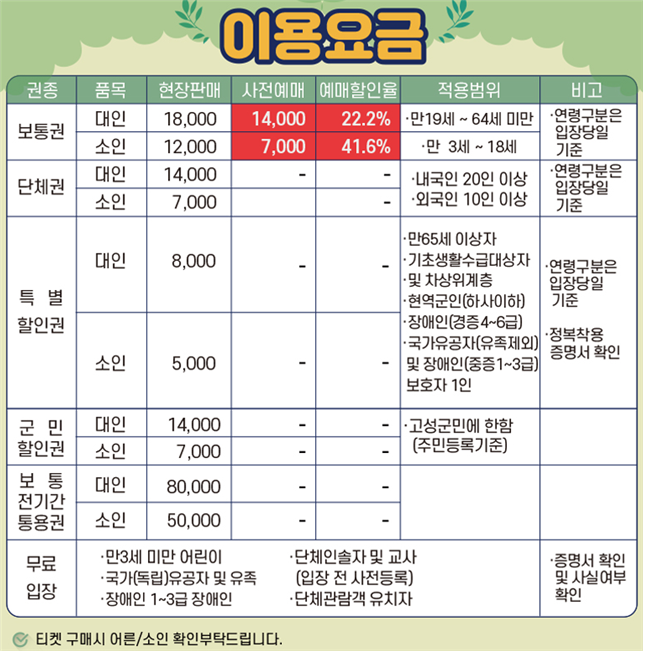 - 대인 : 18,000원 14,000원(22.2% 절감), 소인 : 12,000원 9,000원(41.6% 절감)