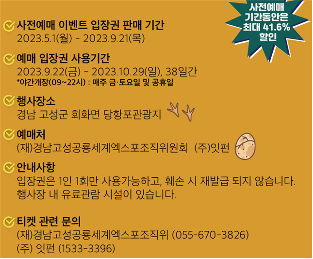 - 사전 예매 기간 : 2023. 5. 1. ~ 9. 21
