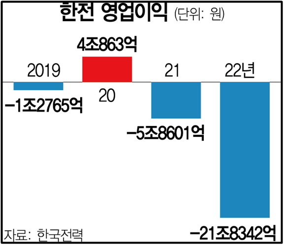 3) 한전은 2022년 영업손실이 약 32조 원을 기록(일반적으로 한전채를 발행, 적자를 메꾸는 상황)