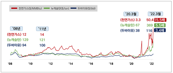 1) 2022년 러시아-우크라이나 전쟁으로 에너지 가격이 급등
