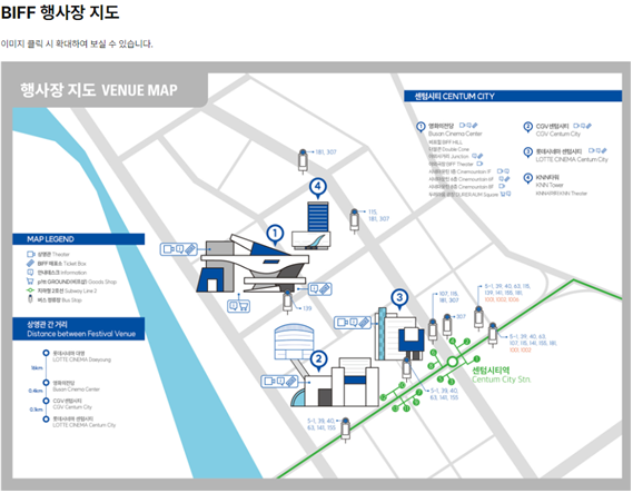- 개막식과 폐막식 당일은 영화의 전당과 센텀시티 인근의 교통혼잡이 예상