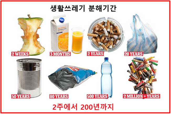무분별한 쓰레기 배출도 지구가 몸살을 앓고 있는 것에 악조건을 제공하고 있지요. 현재 우리의 지구는 갈수록 중병이 심해져 가고 있습니다. 이렇게 아픈 지구를 우리 아이들에게, 자손들에게 물려줄 수는 없습니다.