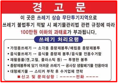 2) 쓰레기 무단투기 근절을 위해, 휴가지 등 취약지역을 대상으로 계도(현수막, 마을 방송 등) 및 순찰 활동을 강화