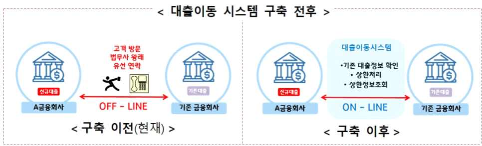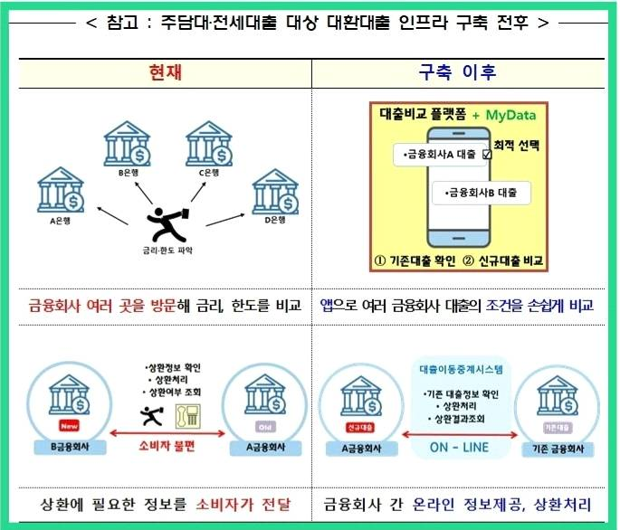 ◆ 주담대. 전세대출 대상 대환대출 플랫폼 구축 전후 비교도