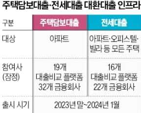 - 이르면 올해 말부터 주택담보대출. 전세대출 갈아타기 서비스를 제공할 플랫폼은 각각 19개(32사), 16개(22사)