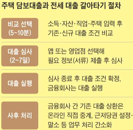 금융회사를 한 번도 방문하지 않고 스마트폰으로 클릭 몇 번이면, 더 싼 이자의 대출로 아파트 주택담보대출과 전세 자금에 대한 대출 갈아타기가 가능해진다는 것입니다.