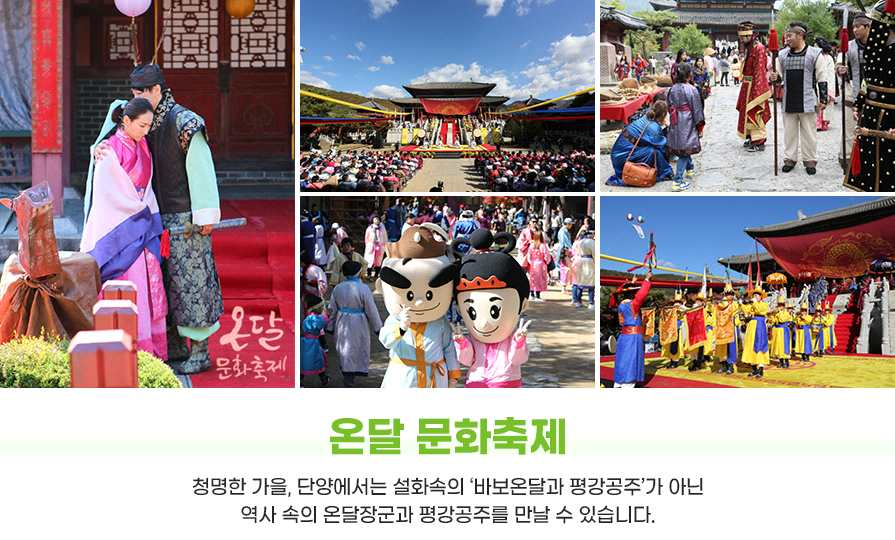 대륙을 호령하던 고구려인의 기상과 나라를 위해 목숨을 바친 온달장군의 혼이 담겨져 있는, 바보온달과 평강공주의 애틋한 사랑 이야기 속으로 함께 빠져들어 보는 것은 어떨지요.