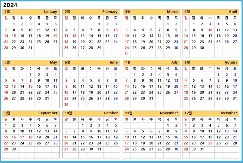 ▶ 2024년 설 연휴 : 2월 9일부터 12일까지(4일)