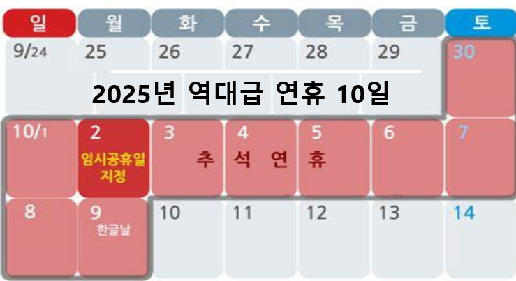 ▶ 역대급 최고의 연휴 2025년 추석 : 7일 연휴 또는 10일 연휴 확보 가능, 직장인들 삼삼오오 벌써부터 시끌시끌