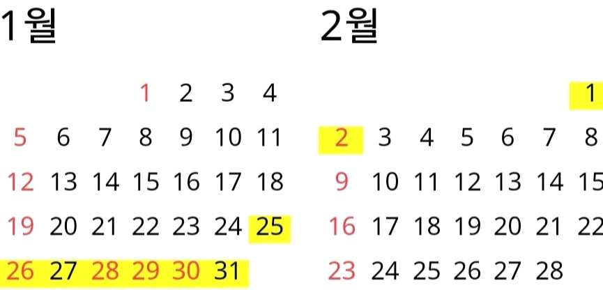 ▶ 2025년 1월 설 연휴 : 6일간의 연휴 확보 가능