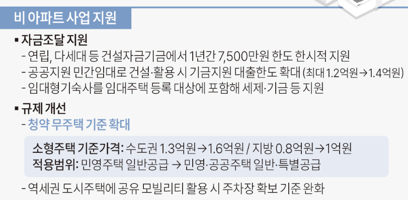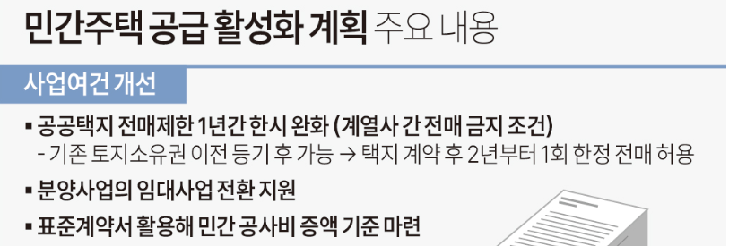 - 건설사의 행정 및 금융적인 부분을 개선, 민간 주택 공급이 원활 가능하도록 개선