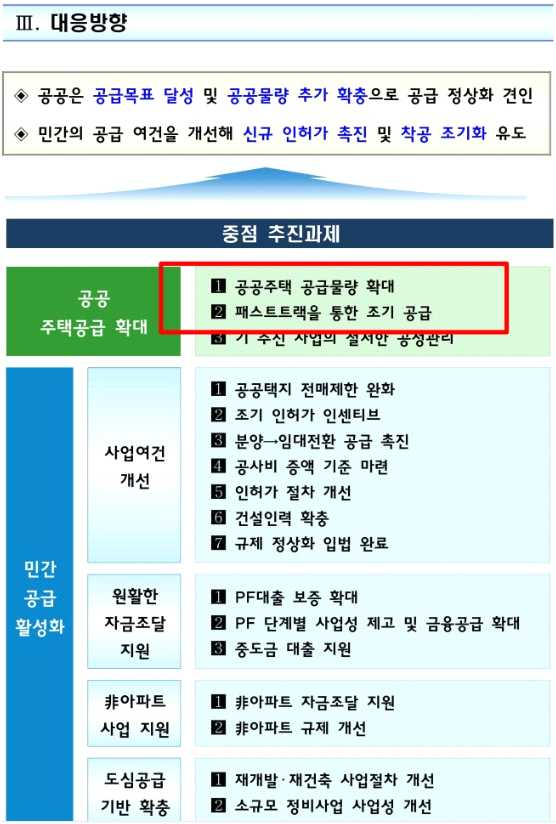 공급 대란은 곧 부동산 상승을 자극하기 때문에, 정부는 공공 및 민간 주택 공급 확대를 통해 공급 대란을 방지하는 것을 핵심 목표로 잡았습니다.
