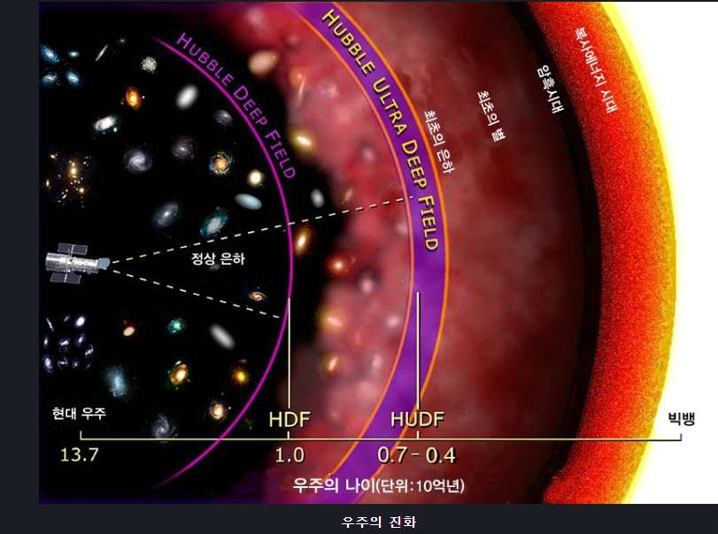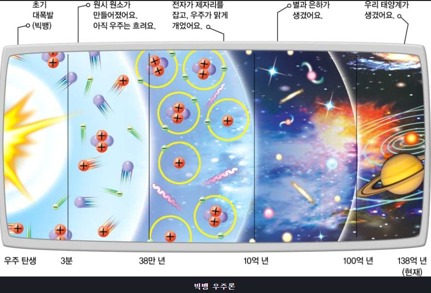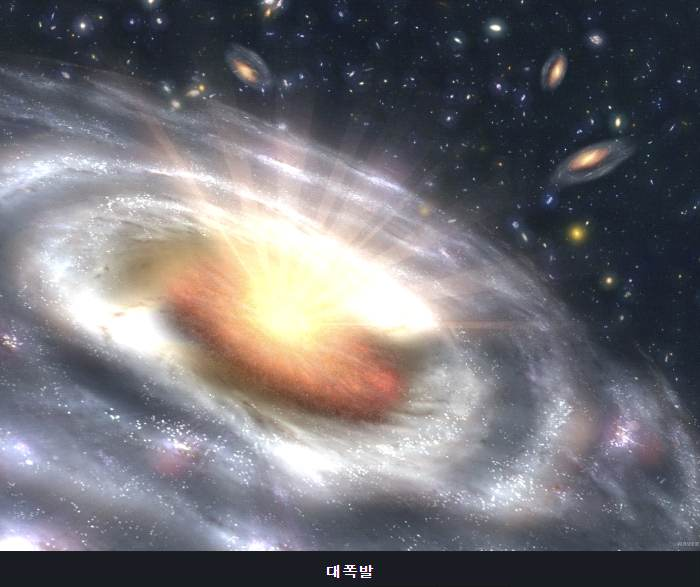 ▶ 현재 우리 우주는 137억 년 전에 고온의 작은 공간이 폭발하듯이 팽창하며 시작되었다고 알려짐