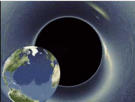 ▶ 블랙홀(black hole)은 중성자 별이 되지 못한 항성이, 진화의 최종단계에서 폭발 후 수축되어 생성된 것으로 추측되는, 강력한 밀도와 중력으로 전자기 복사, 빛을 포함한 그 무엇도 빠져나올 수 없는 시공간 영역
