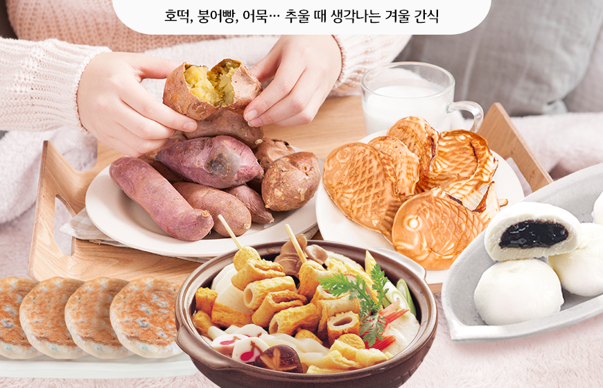 - 소비자들이 꼽은 동 절기 대표 간식이 △붕어빵 44% △군고구마 30% △호빵 11% △호떡 8% △어묵 7% 순