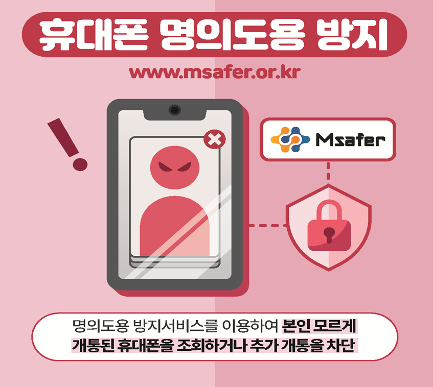 - 본인도 모르는 휴대전화가 개통되어 금융범죄가 생기는 것을 예방하고, 방지하기 위한 '휴대폰 명의도용방지' 서비스