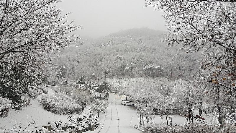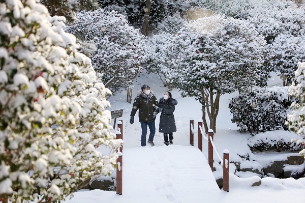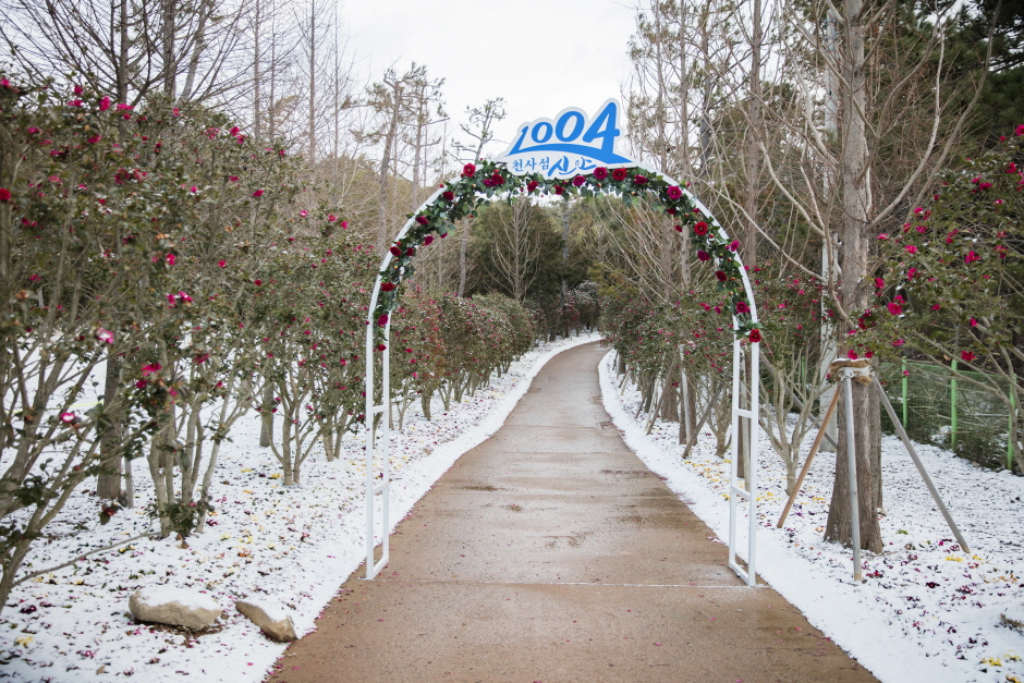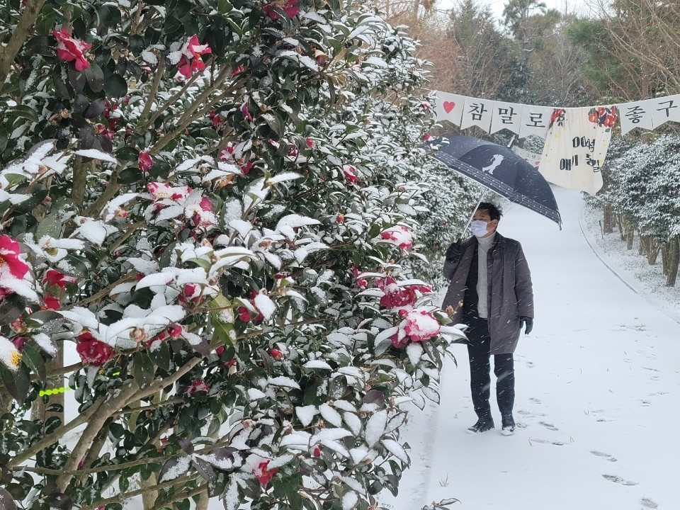 3) 인공제설기로 만든 '눈 내린 동백꽃길 걷기'