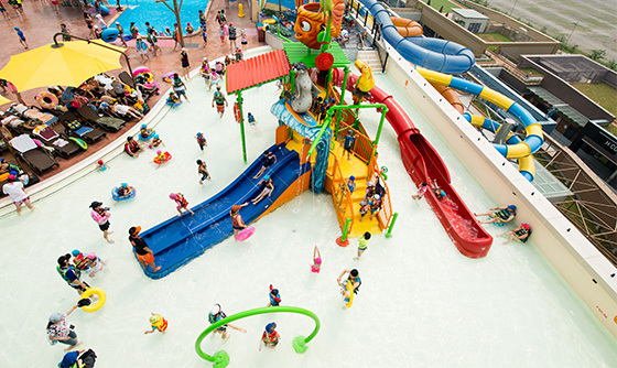 - 실내외를 넘나드는 짜릿한 슬라이드와 파도 풀, 유수 풀 아쿠아 플레이 등 모험심을 자극하는 어트랙션 시설!