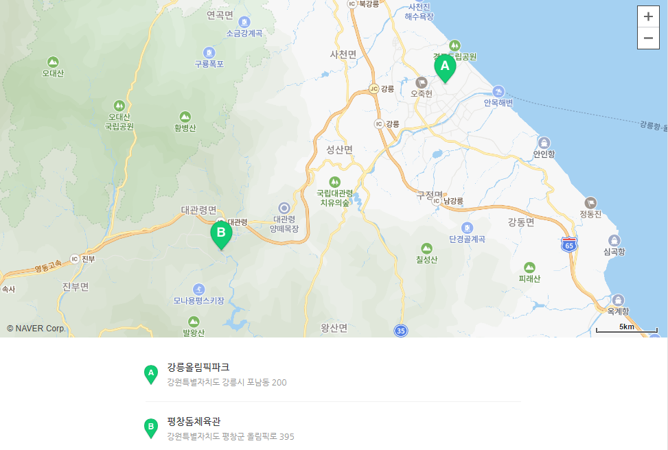 △ 대회장소 : 평창, 강릉, 정선, 횡성 등 강원도 일원