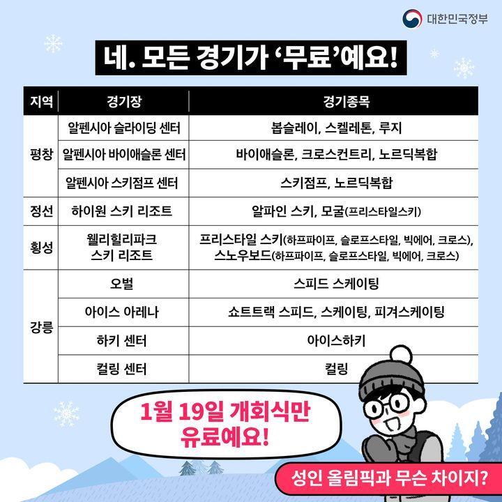 * 개회식을 제외한 모든 경기는 예약만 하면 무료 관람