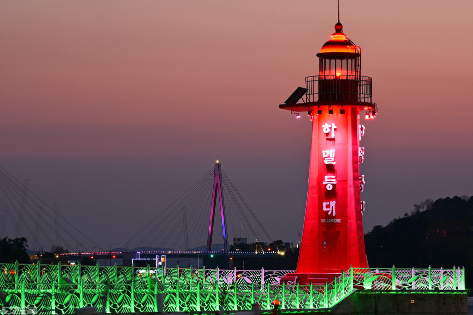 노을이 지고 밤이 되는 풍경을 한눈에 담을 수 있는 이곳에서 낭만적인 여수의 밤바다를 감상해 보세요.