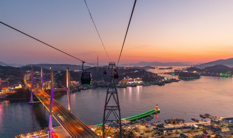 여수해상케이블카는 바다를 감상하며 섬인 돌산과 육지인 자산을 오갈 수 있는 시설입니다. 이곳은 돌산대교, 하멜등대, 오동도 등 형형색색으로 물든 밤바다의 모습 덕분에 야경 명소로도 유명한데요.