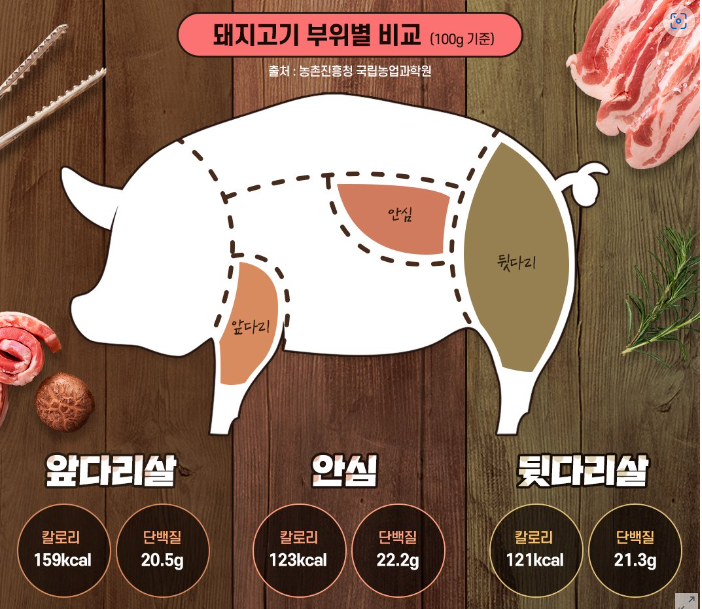 돼지고기의 단백질을 충분하게 섭취를 하고 싶은 분들 같은 경우에는 돼지 앞다리살을 드셔 주시는 것이 좋습니다.