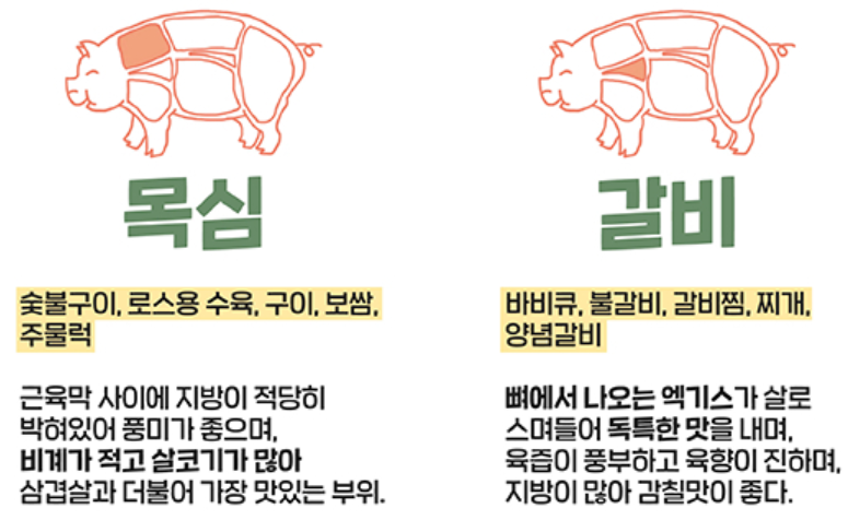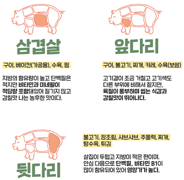 ■ 돼지고기 부위별 명칭 및 음식 활용 방법
