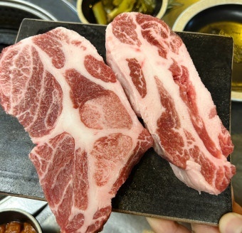 목살은 근육과 지방층으로 구성되어 있어서, 풍미가 좋으며 육질이 부드러운 것이 특징인 부위입니다. 보통 돼지고기의 목살은 소금구이를 해 먹거나 보쌈, 주물럭에 많이 사용되고 있습니다.