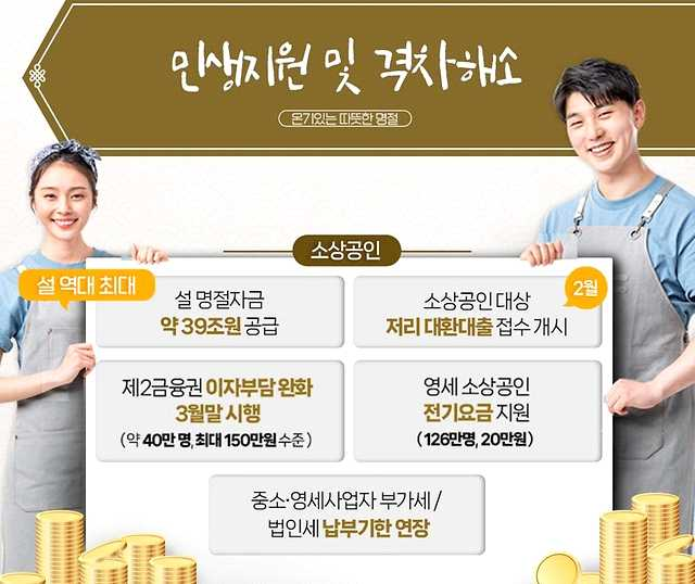 - 설 명절 자금 약 39조 원 공급, 소상공인 대상 저리 대환대출 접수 개시