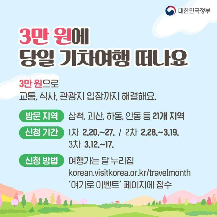 이 행사는 지역의 떠오르는 명소, 전통문화 및 지역특산물, 전통시장 등을 모두 23개 코스로 체험할 수 있는 당일치기 기차여행으로, 3만 원만 부담하면 교통부터 식사, 관광지 입장까지 모두 해결할 수 있습니다.