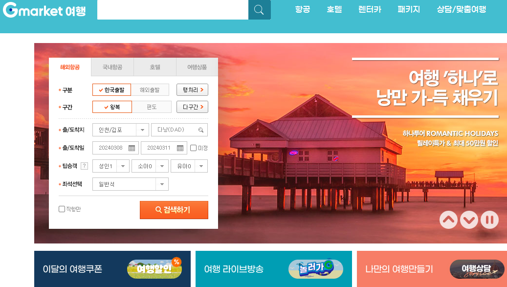 ☞ 상세 내용은 'G마켓 여행상품 특별기획전 바로가기'에서 확인
